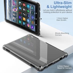 -?Material premium e proteção total?— A capa ultra transparente é feita de material TPU premium, durável, flexível e leve, transparente e à prova d'água protege seu precioso design Tablet Amazon Kindle Fire HD 8 e 8 Plus (12ª geração de 2022), perfeito com uma aparência moderna. Proteção extra com espessamento exclusivo de quatro cantos desenhar. Você não precisa se preocupar com a queda do tablet no chão ou com outros impactos na vida cotidiana
