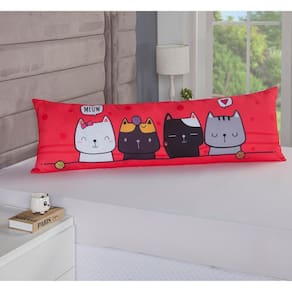 Capa Travesseiro Corpo Gigante 1,45X0,45 Fronha Xuxão Gato - Vermelho