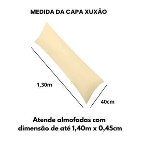 Contém: 02 Fronhas + 1 Capa Xuxão Fronhas: 50cm x 70cm Capa Xuxão: 1,30m x 0,40cm Tecido: Algodão 150 fios / 80% Algodão 20% Poliéster Cor: Palha Atende almofadas com dimensão de até 1,40m x 0,45cm