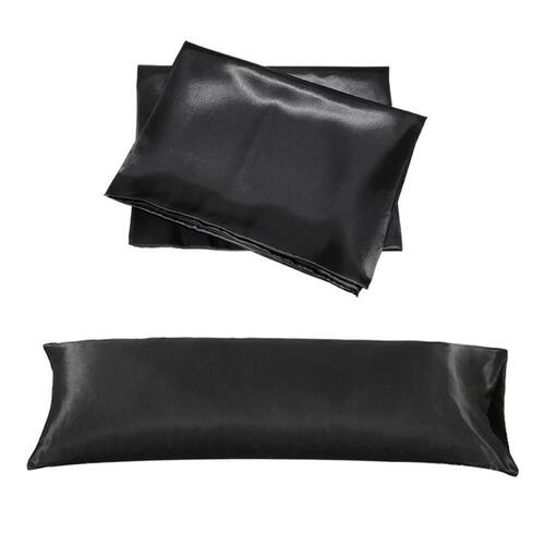 Contém: 02 Fronhas + 01 Capa Xuxão Fronhas: 50cm x 70cm Capa Xuxão: 1,30m x 0,40cm Tecido: Cetim Seda / 100% Poliéster Cor: Preto Atende almofadas com dimensão de até 1,40m x 0,45cm
