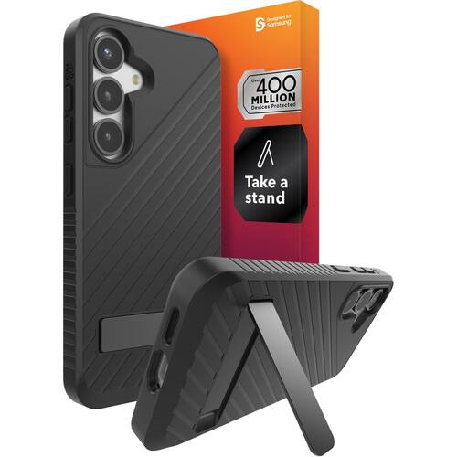 ZAGG Capa Denali para Samsung Galaxy S25 com suporte – Proteção contra quedas de 4,9 m, infusão de grafeno, compatível com carregamento sem fio, design robusto de camada dupla, preta