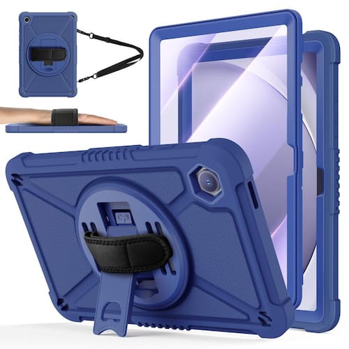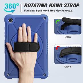 ZtotopCases Para Samsung Galaxy Tab A9+/A9 Plus 28.9 cm 2023 (SM-X210/X216/X218), capa rígida à prova de choque com protetor de tela + alça de mão giratória 360 e suporte + alça de ombro para tablet Tab A9+, azul - Compatibilidade: projetado exclusivamente para o tablet Samsung Galaxy Tab A9 Plus 2023 (SM-X210/X216/X218). Não serve para outros modelos de tablet Samsung. - Suporte giratório + alça de mão: o suporte giratório de 360° oferece visualização em vários ângulos, com alça macia, mais fácil de segurar e usar seu tablet em viagens ao ar livre, trabalho, jogos com crianças. - Alça de ombro portátil?A alça de ombro ajustável oferece a proteção mais segura e mais conveniência quando você joga ou trabalha com o Samsung Tab A9+. Pendure-a em qualquer lugar para seu melhor entretenimento, deixe suas mãos livres. - Proteção múltipla: capa frontal rígida de policarbonato, moldura de TPU e protetor de tela integrado fornecem proteção máxima para o seu Samsung Tab A9+ e é fácil de instalar. Não apenas à prova de choque/durável, mas também confortável ao toque. - Ajuste perfeito: recortes precisos e design com acesso fácil a todos os botões (alto-falantes, botão de volume, porta de carregamento, câmera). - À prova de choque + à prova de quedas: proteção aprimorada contra quedas com absorção extra de choque para fornecer proteção excepcional para a melhor defesa contra quedas. (2 metros de queda testada em cimento)
