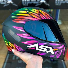 • Casco aerodinâmico em resina termoplástica ABS; • Pintura e verniz automotivos PPG; • Estrutura interna canaletada com dupla densidade e de alta absorção de impacto; • Sistema de ventilação moderno em perfeita harmonia com o casco e de fácil acionamento; • Forro removível e extremamente confortável, cortado a laser e moldado mecanicamente; • Viseira Cristal em policarbonato de 2 mm com amplo campo de visão, proteção antirrisco, antiembaçante e UV; • Trava da viseira que proporciona um fechamento perfeito com excelente vedação; • Sistema de troca rápida da viseira, facilitando a troca das mesmas para as demais recomendadas em situações diurnas e noturnas; • Cinta jugular com engate micrométrico e acabamento em tecido removível, resultando maior praticidade, conforto e segurança; • Narigueira antiembaçante; • Bavete, indispensável na redução do vento interno, proporcionando maior conforto na pilotagem; • Peso 1470/1520g.