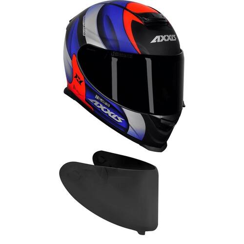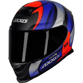 Capacete Axxis Eagle Tecno Matt Preto Vermelho Azul, Fechado Lente Anti Risco, Antiembaçante, Viseira Escura Fumê, Resistente, reforçada, motoboy, viagem, pista.