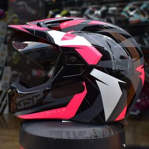 Versão enduro – capacete com a viseira e a pala. Street – capacete com a viseira e sem a pala. Cross – capacete sem a viseira e com a pala.