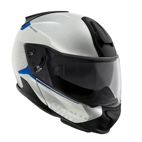 O capacete System 7 Carbon também é homologado como capacete jet. Tal como no modelo anterior, o protetor de queixo também pode ser simplesmente levantado através do mecanismo de quatro articulações basta pressionar um botão. A carcaça externa é feita de fibra de carbono maciça com inserções de reforço, produzida em dois tamanhos diferentes. Como tal, o capacete System 7 Carbon supera em muito todos os padrões de segurança com os seus excelentes níveis de absorção de impacto e ótima rigidez; também é muito leve pesando apenas 1.580 g ou 1.680 g, dependendo do tamanho. Assim como o revestimento externo, o interior do capacete do sistema é absolutamente sofisticado, sendo feito de EPS multissegmentado. O invólucro principal de seção dupla é acolchoado com espuma em espessuras variadas. Isso garante ótimo conforto de uso, bem como excelentes níveis de amortecimento. Alcântara refinada e DuPont Coolmax definem a aparência do interior. O acolchoamento da cabeça, bochecha e pescoço pode ser removido e lavado. As tiras de pescoço integradas garantem que o capacete permaneça na posição ideal na cabeça em caso de acidente. Apenas poucos capacetes possuem esse recurso de segurança muito especial. Uma viseira MaxView curvada tridimensionalmente garante uma excelente visão em todos os climas no capacete System 7 Carbon, e o campo de visão foi significativamente ampliado em comparação com o capacete System 6 EVO. A viseira é de vidro duplo com efeito antiembaçante no interior e revestimento anti-riscos em ambas as faces no exterior. Graças ao escudo solar integrado, a viseira pode ser adaptada a todas as condições de visibilidade. O grande spoiler caracteriza o design marcante e esportivo do capacete. Mas também é altamente eficaz tendo sido desenvolvido no túnel de vento da BMW, existem poucos capacetes no mundo que se aproximam do capacete System 7 Carbon em termos de aerodinâmica e aeroacústica. Finalmente, o controle climático extremamente bom completa as qualidades do capacete. Um controle deslizante colocado centralmente regula a ventilação de toda a área da cabeça, enquanto um botão central no protetor de queixo regula a ventilação da viseira e a alimentação de ar para a área do rosto. Capacete flip-front com mecanismo de articulação quádrupla Capacete totalmente em carbono (dois tamanhos) que oferece excelente absorção de impacto, design leve e máxima rigidez Invólucro interno feito de EPS multissegmentado Viseira dupla: viseira interna antiembaçante; viseira externa com revestimento resistente a arranhões em ambos os lados Ventilação eficaz para cabeça e viseira Excelente aerodinâmica e aeroacústica Pala solar integrada, operada através de controle deslizante Spoiler grande e muito eficaz Protetor de queixo aberto por meio de botão central Chinstrap com fivela de pressão; tiras de pescoço integradas para manter o capacete firmemente na posição Interior removível e lavável em Alcantara e DuPont Coolmax Converte-se rápida e facilmente em um capacete aberto Preparado para o sistema de comunicação BMW Motorrad ECE 22-05 aprovado