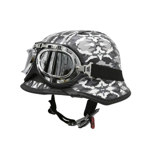Desperte o estilo vintage com um toque de classe. Experimente a liberdade com nossos capacetes temáticos de alta performance, agora com acabamento em material sintético texturizado, que une elegância, durabilidade e autenticidade. O casco é fabricado com o mesmo material de alto impacto utilizado em capacetes de moto, oferecendo estrutura robusta com visual retrô inconfundível. O engate micrométrico com regulagem proporciona um encaixe seguro e confortável, enquanto os grafismos exclusivos da nossa marca ganham ainda mais destaque com o acabamento premium em material sintético. Por dentro, conforto garantido. O forro interno antialérgico, com espuma e pluma de poliamida, assegura uma experiência macia e aconchegante para todas as suas aventuras seja para exposições, sessões de fotos, fantasias ou coleção. Inspirado no modelo vintage alemão da Segunda Mundial, este capacete é uma peça única para apaixonados por história, estilo e autenticidade. Lembre-se, é importante respeitar as normas de segurança: este produto não é indicado para uso em veículos motorizados como motos, karts, entre outros. Especificações técnicas: Casco ABS alto impacto mesmo dos capacetes de moto . Engate micrométrico com regulagem. Forro interno antialérgico com espuma e pluma poliamida. Pintura automotiva de primeira geração. PP VESTE 53/54 cm P VESTE 55/56 cm M VESTE 57/58 cm G VESTE 59/60 cm GG VESTE 61/62 cm Homologação Inmetro: 5979/2020-BRI-1 Marca: Não Informado Ean: 7908643730755