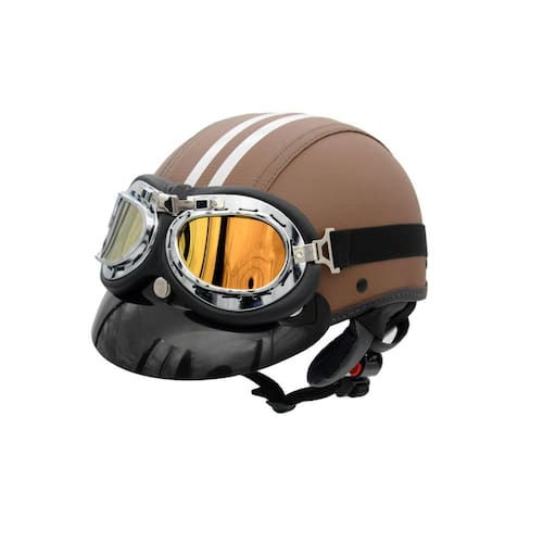 Coquinho com oculos retro Couro sintético Marca: br101 Casco de matéria prima plástica alto impacto Interno em eps alta densidade Cinta jugular com fecho exclusivo br101 certificado com 2 estágios de trava Borda do capacete em costura exclusiva da marca Adesivos refletivos aplicados para melhor sinalização noturna e exclusiva
