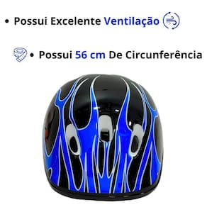 Capacete de proteção infantil para prática esportiva jr1022 Desenho: chamas azul Preparem-se para essa super novidade, seu filho a vai amar. O nosso capacete de proteção infantil proporciona máxima segurança e conforto para as crianças, perfeito para atividades como andar de bicicleta, patinete, skate, ou patins fabricado com materiais leves e resistentes, esse capacete oferece ajuste confortável e seguro, garantindo que os pequenos aventureiros estejam sempre protegidos. Ele conta com presilhas ajustáveis com engate rápido, que se adapta em diversos tamanhos de cabeça, possui uma ventilação eficiente com aberturas estrategicamente posicionadas que mantêm a cabeça arejada, ideal para dias mais quentes. Não perca mais tempo e garanta já, ideal para pais que buscam qualidade e segurança em um único produto. Transforme as aventuras das crianças em momentos seguros e sem preocupações Por que comprar com a imports - enviamos em até 24 horas; - produto de ótima qualidade; - produto testado e muito bem embalado para chegar em perfeito estado; - foco total no cliente. Informações importantes: - modelo: capacete de proteção infantil - material: plástico - indicado para crianças maiores de 3 anos - circunferência do capacete: 56 cm - ajuste em presilhas com engate rápido - estrutura resistente - excelente acabamento - alta qualidade Homologação Inmetro: ABCP-BRI-0260-2021-07 Marca: Não Informado