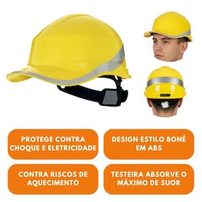 Material resistente (calota): ABS, PE e PA (Poliamida)