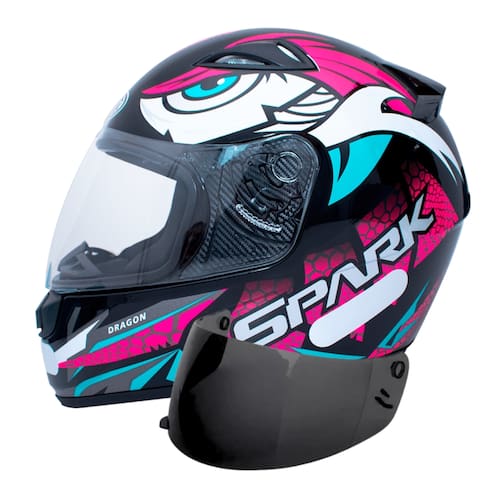 - 1 Capacete Ebf Spark Dragon Preto Rosa - 1 Viseira Capacete EBF E0X Spark 2mm Polivisor Fumê