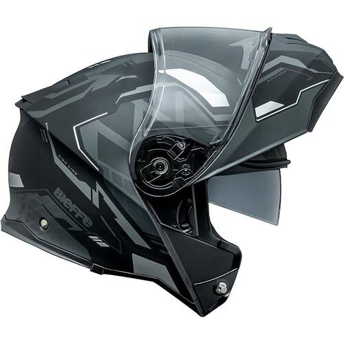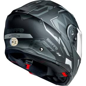 Características: -Capacete flip-up, casco compacto produzido com tecnologia HEAP - High Energy Absorption Polymer; -Sistemas Air Eschange, que auxilia em excelente circulação interna de ar e evaporação da umidade; -Viseira de Policarbonato 2,2mm com borda estrutural de 3mm, múltiplos estágios de abertura; -Queixeira com trava de segurança, acionamento de fácil abertura. Mecanismo interno em metal antioxidante; -Sistemas Air Exchange, que auxilia em excelente circulação interna de ar e evaporação da umidade; -Viseira de Policarbonato 2,2mm com borda estrutural de 3mm, múlsiplos estágios de abertura; -Queixeira com trava de segurança, acionamento de fácil abertura. Mecanismo interno em metal antioxidante; -Sistema Emergency Handle: alças de resgate para retirada rápida do capacete em situações de acidente -Sistema Easy Fit, abertura que proporciona conforto para o uso de óculos, com encaixe perfeito das hastes no interior do capacete; -Viseira antirisco e proteção UV, preparada para anti-fog; -Preparado para sistema de fonia (Não Intercomunicador) -Peso 1800g Certificação NBR7471