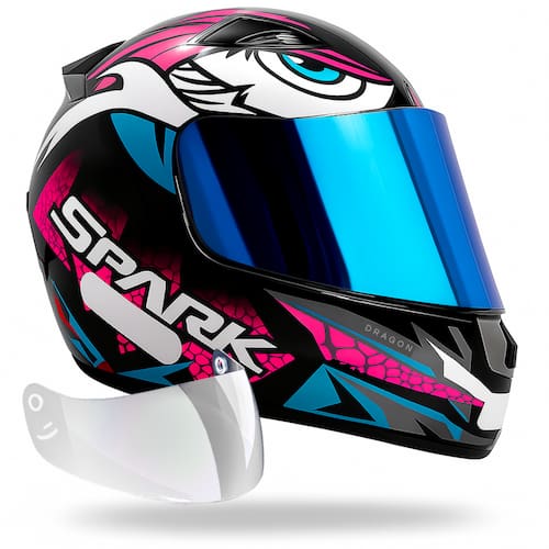 Capacete Feminino Ebf Dragon Rosa + Viseira Iridium - Tamanho: 56
