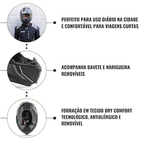 Além de resistente a impactos e arranhões, o Capacete Gp Tech A118 Sv Elite também acompanha bavete e narigueira removíveis, adaptando-se ao seu estilo sem perder segurança ou visibilidade.