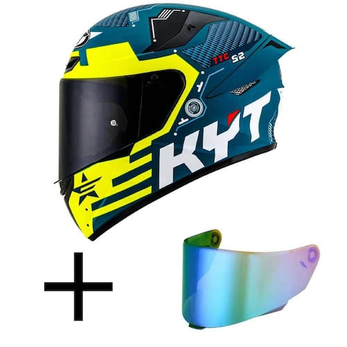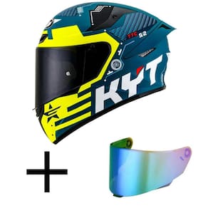 Capacete KYT TT Course Fuselage Azul e Amarelo Mais Viseira Camaleão