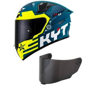 Capacete KYT TT Course Fuselage Azul e Amarelo Mais Viseira Fumê