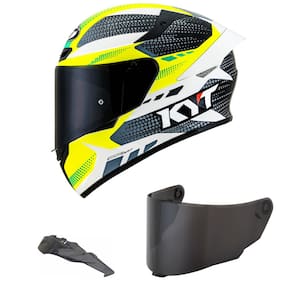Capacete KYT TT Course Gear Preto e Amarelo Mais Viseira Fumê e Spoiler Fumê