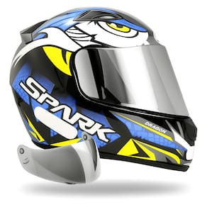 Capacete Masculino Ebf Spark Dragon Azul + Viseira Cromada - Tamanho: 60