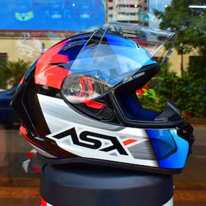 O capacete é enviado na caixa da ASX junto com sua embalagem protetora do tecido e manual.