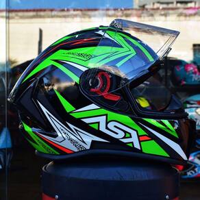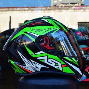• Capacete pesa em média 1535 gramas; • Casco aerodinâmico em resina termoplástica ABS; • Pintura e verniz automotivos PPG; • Possui adesivos refletivos na cor preta; • Estrutura interna canaletada com dupla densidade e de alta absorção de impacto; • Sistema de ventilação moderno em perfeita harmonia com o casco e de fácil acionamento; • Possui 1 Entrada de ar superior, 1 Entrada de ar frontal e 1 saída de ar; • Forro removível e extremamente confortável, cortado a laser e moldado mecanicamente; • Viseira em policarbonato de 2 mm (TRANSPARENTE) com amplo campo de visão, proteção antirrisco, antiembaçante e UV; • Viseira possui 6 estágios de abertura; • Trava da viseira que proporciona um fechamento perfeito com excelente vedação; • Sistema de troca rápida da viseira, facilitando a troca das mesmas para as demais recomendadas em situações diurnas e noturnas; • Cinta jugular com engate micrométrico e acabamento em tecido removível, resultando maior praticidade, conforto e segurança; • Narigueira antiembaçante; • Bavete, indispensável na redução do vento interno, proporcionando maior conforto na pilotagem;