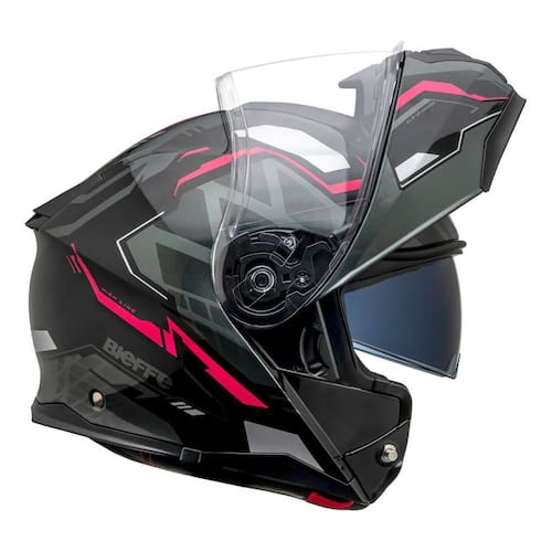 Mais conforto e segurança ao pilotar O modelo escamoteável oferece o mesmo nível de proteção de um capacete integral, com a praticidade de poder levantar o protetor de queixo sempre que desejar. Assim, você pode sentir o ar no rosto sem precisar remover o capacete.