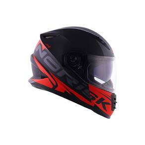 - Possui o selo do INMETRO e adesivos refletivos; - Casco em resina termoplástica ABS; - Viseira de 2mm com proteção UV, resistente a risco; - Viseira solar interna; - Forração em tecido tecnológico, hipoalérgico, removível e lavável; - Cinta jugular com sistema de engate micrométrico; - Sistema de ventilação: Entradas de ar frontal e extratores traseiros.