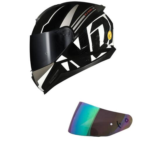 Capacete Norisk Razor Full Preto e Branco Mais Viseira Camaleão