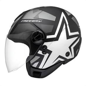 Características técnicas: Casco injetado em termoplástico de alta absorção abs . Verniz protetor com pintura mais resistente. Viseira anti-risco Viseira de troca rápida. Viseira em policarbonato de 2 mm Grafismo em decal. Revestimento interno forração removível e lavável em tecido antialérgico. Anel antifurto. Fecho micrométrico. Peso médio: 1,1630 kg. Fotos ilustrativas O queridinho das ruas O modelo freeway é um capacete aberto ideal para uso urbano. Para enfrentar a correria do dia a dia com conforto e praticidade, nada melhor do que a viseira com extenso campo de visão e o grafismo em decal com verniz protetor.A viseira possui um sistema de troca rápida para facilitar a manutenção do produto. Além disso, temos uma ampla linha de viseiras metalizadas para você acelerar com estilo Entrada de ar A ventilação dentro do capacete é fundamental para o seu conforto durante a pilotagem. É por esse motivo que as entradas de ar, mesmo em um modelo aberto, são tão importantes na hora de escolher o seu produto.O design moderno do freeway vai te encantar além da proteção garantida pela melhor fábrica de capacetes do brasil, esse modelo trará muito conforto para a sua pilotagem. Forração antialérgica, removível e lavável Todos os nossos produtos têm forração removível e lavável, aumentando a durabilidade do capacete e facilitando a sua manutenção. Surpreenda-se com o capacete peels freeway: praticidade e conforto para os passeios urbanos, com um toque de modernidade no dia a dia. de fábrica: 3 meses Homologação Inmetro: CE-BRI/IQB 006465 55291/22-038