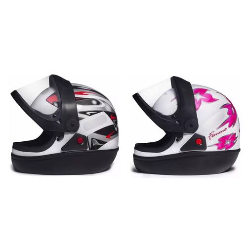 - Marca San Marino - Modelo Grafic, Femme - Cor Branco - Casco Em ABS - Selo de aprovação NBR7471 - Viseira cristal - Abertura Automática Da Viseira - Viseira Cristal Em Policarbonato - Sistema Rápido De Troca De Viseiras - Tecido Antialérgico - Engate Micrométrico - Certificado Pelo Inmetro - Resistência a impacto