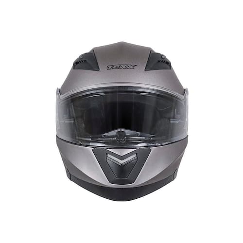 o capacete TEXX Gladiator V3 possui as viseiras externa e solar interna com acabamento antirrisco. antiembaçamento e com proteção UVA/UVB. O forro interno é produzido com moléculas de prata antifungo e antibactéria. DESCRIÇÃO DO PRODUTO CONSTRUÇÃO • Produzido em ABS que garante resistência e leveza ao capacete; • Viseira externa produzida em policarbonato de 2.2mm e com acabamento antirrisco. antiembaçamento; Acompanha viseira interna de 1.5mm para proteção contra os raios solares com proteção UVA/UVB por acionamento através de um botão lateral do casco; TECNOLOGIA Capacete modular com tecnologia Double Vision; Possui fixador de viseira EVO TEXX com melhor aerodinâmica e isolamento acústico; O forro interno removível produzido em Micro Fibra Inteligente TEXX. é capaz de evaporar suor e umidade rapidamente além de possuir tratamento anti-bactéria e anti-alérgico; • Sistema de ventilação AIRTEXX com entradas de ar na parte frontal superior e saídas de ar na parte traseira; CONFORTO É um dos capacetes modulares mais leves do mercado.