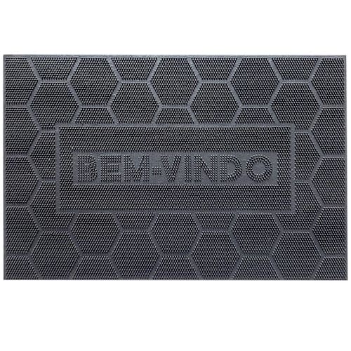 Capacho de Borracha Tapete de Porta Entrada 60x40cm Uzoo Desenho do Tecido: BEM-VINDO HEXAGONO Tapete Capacho de Porta 60x40cm Borracha Dots Uzoo