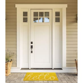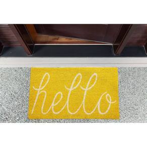 DII Hello Capacho de fibra de coco antiderrapante durável para uso externo/interno, adequado para animais de estimação, 48 x 75 cm, amarelo