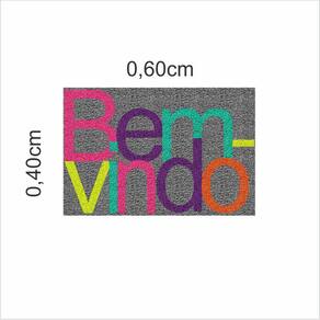 Tapete Capacho Vinil com fibras entrelaçadas e costado emborrachado com arte pinta em tinta vinílica especial.