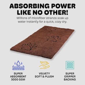 The Dirty Dog Doormat is a highly absorbent and versatile solution for keeping the floors of your home and car clean and dry. Featuring advanced microfiber technology with 50% more strands per inch, the dog floor mat measures 60 x 30 inches, soaks up to 7 times its weight in water or mud, and dries 5 times faster than ordinary mats. Its plush, velvety texture is gentle on paws, while the Super Gripper Backing ensures the pet door mat stays securely in place. Machine washable and durable, this mud and water absorbent door mat is suitable for use in cars, crates, under food bowls, after baths, or anywhere you need to trap dirt and water, offering unmatched convenience and performance.