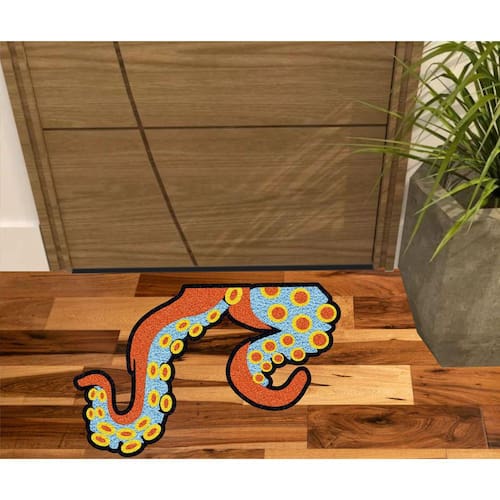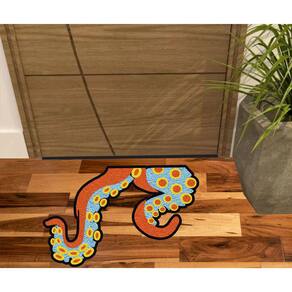 Tapete Capacho Vinil com fibras entrelaçadas e costado emborrachado com arte pinta em tinta vinílica especial.