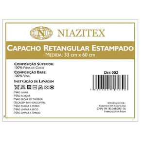 O Capacho Retangular Estampado Niazitex é composto por fibra de coco natural, que é obtida a partir da casca externa do coco. Essa fibra é resistente e possui excelentes propriedades para reter sujeira, poeira e umidade dos calçados, ajudando a manter os ambientes limpos. É uma opção prática, durável e sustentável para manter a limpeza dos ambientes, além de adicionar um toque rústico e acolhedor à entrada de qualquer espaço. Se você está em busca de produtos com ótimo acabamento, durabilidade e qualidade, aposte na Niazitex, que disponibiliza artigos que complementam com muita elegância a decoração do seu ambiente.
