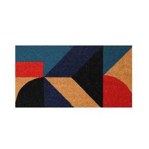Capacho Retangular Fibra De Coco Base PVC 60x33cm - Komeco - Geométrico Azul e Vermelho