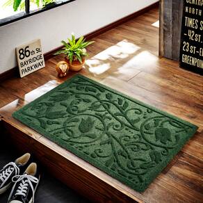 Capacho VivaNest Green Floral Front Door —?CAPACHO DURÁVEL PARA TODAS AS ESTAÇÕES?: O capacho para todas as estações da VivaNest apresenta um design floral de eucalipto natural clássico e moderno. Construído com uma estrutura de alta densidade, macia e flexível. Seus sulcos profundos e a borda de borracha chanfrada capturam facilmente sujeira, detritos e umidade. -?MATERIAL RESISTENTE A MANCHAS E DESBOTAMENTO?: Este capacho foi projetado para ser durável, com superfícies resistentes a manchas, intempéries e desbotamento para uso interno e externo de longa duração. Construído com materiais de alta qualidade, ele permanece forte e flexível em todas as condições climáticas. -?SUPORTE DE BORRACHA NATURAL ANTIDERRAPANTE?: Nossos tapetes possuem um suporte de borracha resistente de 2,5 kg/m², garantindo estabilidade e segurança superiores. Fabricados com borracha natural para maior resistência e resistência ao rasgo, eles emitem um odor mínimo. Com um suporte de borracha antiderrapante, eles evitam escorregões e infiltrações de água, protegendo efetivamente os pisos internos. -?MULTIUSO?: Os tapetes de boas-vindas da VivaNest são projetados para uso versátil, em ambientes internos e externos, mantendo os pisos limpos em residências, escritórios, portas dianteiras, calçadas, terraços, garagens, celeiros, calçadas e vários outros ambientes. Seu design simples e elegante complementa qualquer decoração, tornando-os uma opção de presente ideal. -?FÁCIL DE LIMPAR?: Nossos tapetes são projetados para uma manutenção sem complicações. Basta usar um aspirador de pó ou sacudir os detritos para uma limpeza rápida. Para uma limpeza mais profunda, enxágue com uma mangueira de jardim e deixe secar rapidamente.