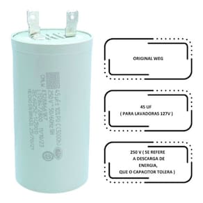 Capacitor 45UF compatível com lavadoras de roupas Brastemp, Consul, Electrolux, GE e Colormaq, 127 volts.