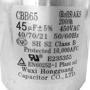 - 1 Capacitor 45UF 450VAC Com Protetor Térmico