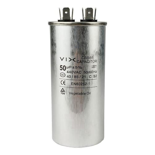 O capacitor de partida em um ar condicionado residencial/comercial serve para auxiliar o motor do compressor ou motor do ventilador a iniciar o movimento de forma eficiente, reduzindo a carga elétrica inicial exigida para superar a resistência da inércia.
