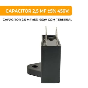 O Capacitor 2.5 MFD 440VAC tem como objetivo armazenar cargas elétricas e, através desse armazenamento, fazer os efeitos sobre o circuito. A Capacitância é sua característica elétrica, que está relacionada com a voltagem (V). Quanto maior a tensão, menor a capacitância e vice-versa. Caso o aparelho elétrico apresente diminuição de potência, barulhos estranhos ou zumbido no motor recomenda-se verificar o capacitor. É indicado para sistemas de refrigeração e ar-condicionado. Possui alta resistência aos choques e vibrações.