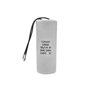 Capacitor de partida do tipo CBB60 com corpo cilíndrico e dois fios para conexão rápida. Ideal para motores monofásicos de baixa potência, como em compressores, ventiladores, lavadoras e bombas. Garante impulso inicial e torque adequado para partidas confiáveis.