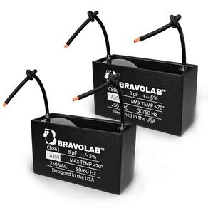 - Conteúdo da embalagem: dois capacitores de 8 µF, invólucro de plástico durável, conexões de 2 terminais de fio -