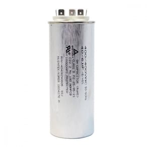 Capacitor duplo de alumínio para ar condicionado LG 40 + 6UF 50/60HZ 400V O capacitor de fase tem a função de corrigir o fator de potência originado pela oscilação de tensão do compressor e motor do ventilador. Podem ser encontrados em dois tipos, Simples e Duplo. Em condicionadores de ar tipo Split encontramos frequentemente o Duplo (compressor + Ventilador), e em condicionadores de ar tipo janela. Possíveis ocorrências: Compressor não liga; Motor do ventilador da unidade Condensadora não liga; Como testar o capacitor? 1 Inicialmente verifique se o capacitor não encontra- se estourado; 2 - Antes de começar os testes, certifique- se que o mesmo encontra- se descarregado; 3 Utilizando um capacimetro meça a capacitância descrita no corpo do capacitor com uma variação de 5%, caso a medida esteja fora da variação de 5% ou não apresente continuidade, o capacitor deverá ser trocado.