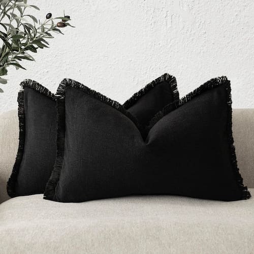 Capas de almofada Findtower Linen Fringe 30x60 cm pretas
