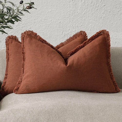 Capas de almofada Findtower Linen Fringe 30x60 cm Rust