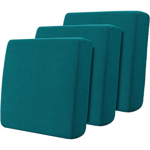 Hokway Capas de almofada de sofá elásticas reversíveis para substituição (azul-petróleo, 3) - Guia de tamanhos: 3 peças incluídas. Serve em uma almofada de 51 a 63 cm de comprimento, 50 a 69 cm de largura e 5 a 23 cm de altura. Com ótima elasticidade, serve para mais de 90% de almofada. Aplicação de tamanho maior devido à elasticidade e à faixa elástica que temos na parte inferior. - Função exclusiva: diferente de outros materiais, o tecido que usamos não absorve água por cerca de 3 segundos. Você pode usar o intervalo de tempo para limpar, o que economiza seu tempo na lavagem e troca. - Material fino: 85% poliéster e 15% elastano. Macia, respirável e durável, enquanto mantém a alta capacidade de elasticidade. O tecido jacquard é resistente a vincos, então a capa de almofada permanecerá em forma, não importa como você se sente ou lave. - Cobertura da almofada: com o elástico ao redor da borda, a capa da almofada ficará no lugar. Não há necessidade de ajuste depois que alguém se sentar na almofada. Evite que seus móveis sejam utilizados diariamente, arranhões e outros acidentes. - Combine: a capa de almofada não apenas cobre os danos dos seus móveis antigos, mas também dá à sua casa um novo visual. Vinte e duas cores para você escolher para combinar com a decoração da sua casa. A cor de Natal oferecida ajuda nos festivais.