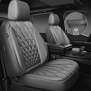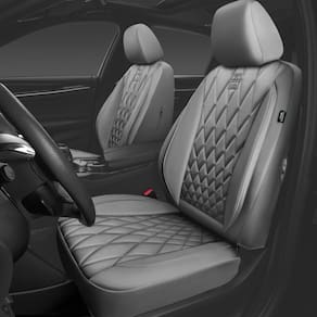 CAR PASS Piping Capas de Assento de Carro de Couro Luxuoso Apenas Duas Frontais Feito de couro luxuoso Antiderrapante à prova d'água Compatível com airbag Ajuste universal e fácil instalação - ?Capas de assento de couro avançado?As capas de assento de couro sintético cinza são feitas de couro de alta qualidade, oferecendo proteção total para os assentos do seu carro. Impermeável, respirável e fácil de limpar. Proteja as capas do assento do seu carro contra poeira, arranhões e outros possíveis danos. O excelente design de costura de diamante adiciona luxo e moda ao interior do seu carro. - ?Design superior?As capas de assento de carro premium ergonomicamente projetadas da CAR PASS oferecem o máximo em conforto em termos de desempenho da capa de assento - em conformidade com o seu corpo e proporcionando o máximo de conforto durante a condução. Alivia os músculos doloridos e reduz a fadiga. O design antiderrapante garante que a capa do assento permaneça no lugar e não se mova durante a condução. - ?Compatível com airbag?Ajuste perfeito para a maioria dos veículos com os orifícios de abertura reservados. As capas separadas do encosto de cabeça permitem um ajuste fácil do encosto de cabeça para conforto e segurança ideais. Temos a patente exclusiva sobre a explosão de airbag para as capas de assento em caso de emergência. - ?Ajuste universal e fácil instalação?As capas de assento luxuosas são compatíveis com a maioria dos veículos, caminhonetes e caminhões de carros sedãs. Compatível com veículos com bancos dianteiros com apoio de braço lateral. Fácil de instalar, sem necessidade de ferramentas. As instruções de instalação estão incluídas no pacote. Recomendamos que você leia o manual de instruções passo a passo para orientação. Devido à embalagem, o produto se desdobra com rugas, a capa do assento se recuperará uma semana após a instalação. - ?SERVIÇO DE SATISFAÇÃO DO CLIENTE?Estamos comprometidos em fornecer produtos de alta qualidade e atendimento ao cliente excepcional. Se você tiver algum problema ou preocupação com sua compra, sinta-se à vontade para entrar em contato conosco e resolveremos imediatamente para garantir sua satisfação.