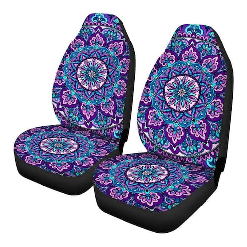 TOADDMOS Boho Mandala Lotus Capas de assento de carro universais roxas para assentos dianteiros apenas para mulheres, adequado para a maioria dos carros - Incluído no pacote: 2 x capas de assento concha dianteiras - Feito de tecido de microfibra de poliéster de alta qualidade - super macio, respirável, confortável, resistente ao desgaste, fácil de limpar, uso nas quatro estações - Apresenta designs inovadores e cores vibrantes, adicionam um toque de exclusividade e alegria quando você está dirigindo. Proteja seus assentos de derramamentos, manchas, rasgos, desbotamento e pelos de animais de estimação, deixe seu carro ganhar um novo visual - Projetado para instalação rápida e fácil na maioria dos carros e assentos estilo SUV Bucket - sem necessidade de ferramentas. O sistema de suporte elástico e fixação garante um ajuste universal confortável e seguro na maioria dos assentos padrão de carros e SUV - Não deve ser utilizado em assentos com airbags integrados, cintos de segurança ou apoios de braço